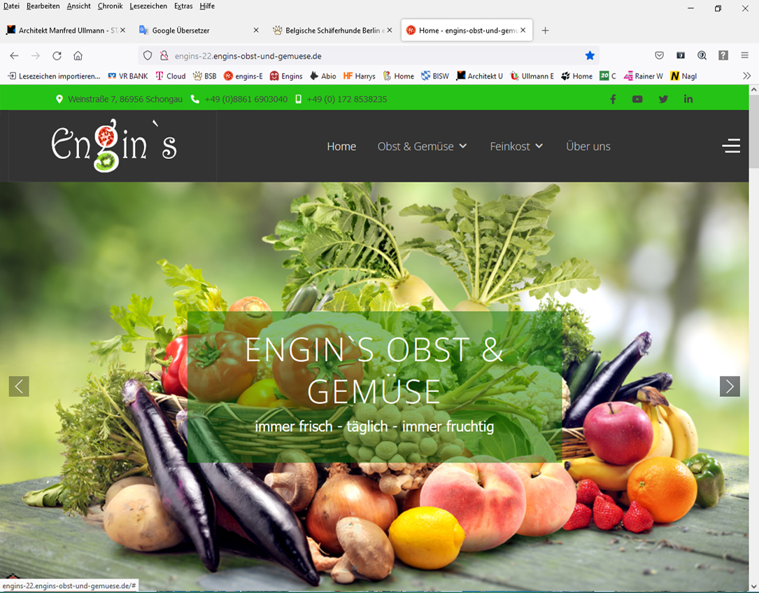 Auftraggeber: Engin`s Obst und Gemüse Engin Yapici 86956 Schongau Aufgabenbeschreibung: - Entwicklung, Layout, Realisierung komplett - SEO etc. https://www.engins-obst-und-gemuese.de |