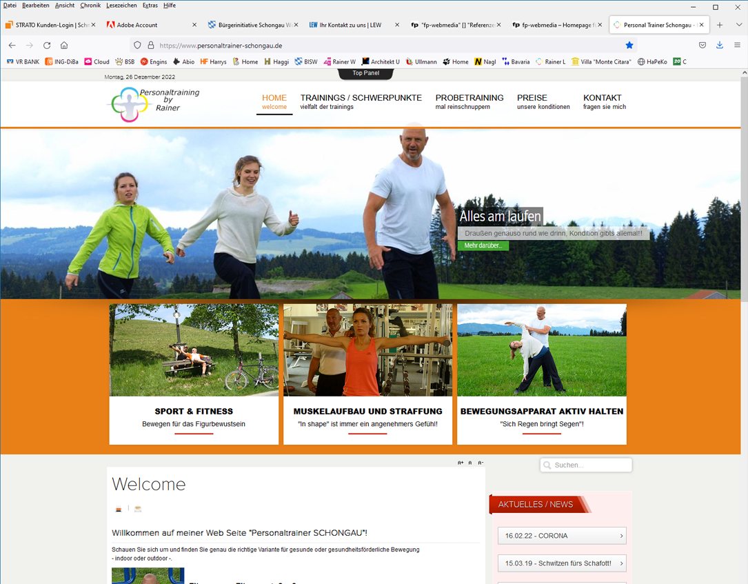 Auftraggeber: "Personaltrainer Schongau", Rainer Lindner, 86956 Schongau Aufgabenbeschreibung: - Konzeption, Entwicklung und Realisierung - Erstellung der Website - Photoarbeiten, Layout - OFFLINE - |