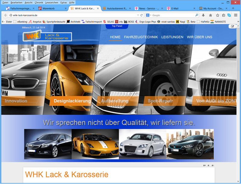 Auftraggeber: WHK Lack & Karosserie, autorisierter Fachbetrieb für Lackierungen aller Art 86956 Schongau Aufgabenbeschreibung: - Konzeption, Entwicklung und Realisierung - Photographische Arbeiten, SEO - OFFLINE - |
